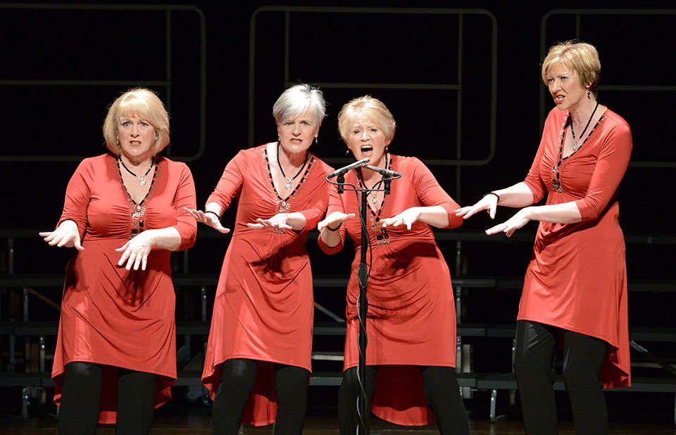 We are available to entertain at private functions, corporate events, or as guests on your shows. We have a wide and eclectic range of repertoire suitable for all kinds of events. We are also available for hire as vocal coaches for quartets and choruses, having a Sweet Adeline Master Director (Gwen) and three others who have completed the Director’s Certification Programme, and together we have over two hundred years of barbershop experience! We can tailor our performances and coaching sessions/day workshops/weekend workshops to whatever you require. And we are happy to travel!